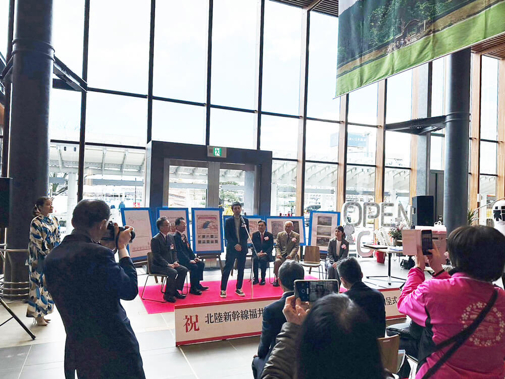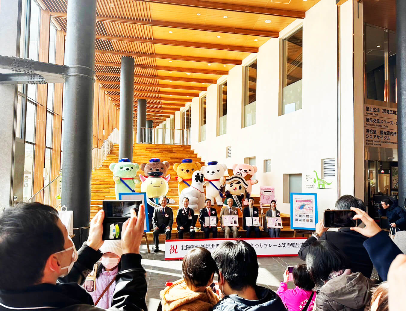 福井駅で福井市長、福井郵便局長さまと贈呈式にも参加。