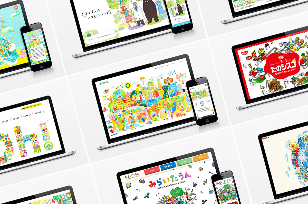 オンライン上の商店街というコンセプトを浮遊感のあるイラストによって可視化し、